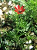 Das Sommer-Adonisröschen ist leicht mit dem Herbstblutströpfchen zu verwechseln; dieses blüht aber, wie der Name schon sagt im Herbst und nicht wie dieses hier von Mai bis August. Das Sommer-Adonisröschen findet man nur vereinzelt im Mittelmeerraum vor. (Photographiert am 11. Mai 2000 bei Aspremont.)